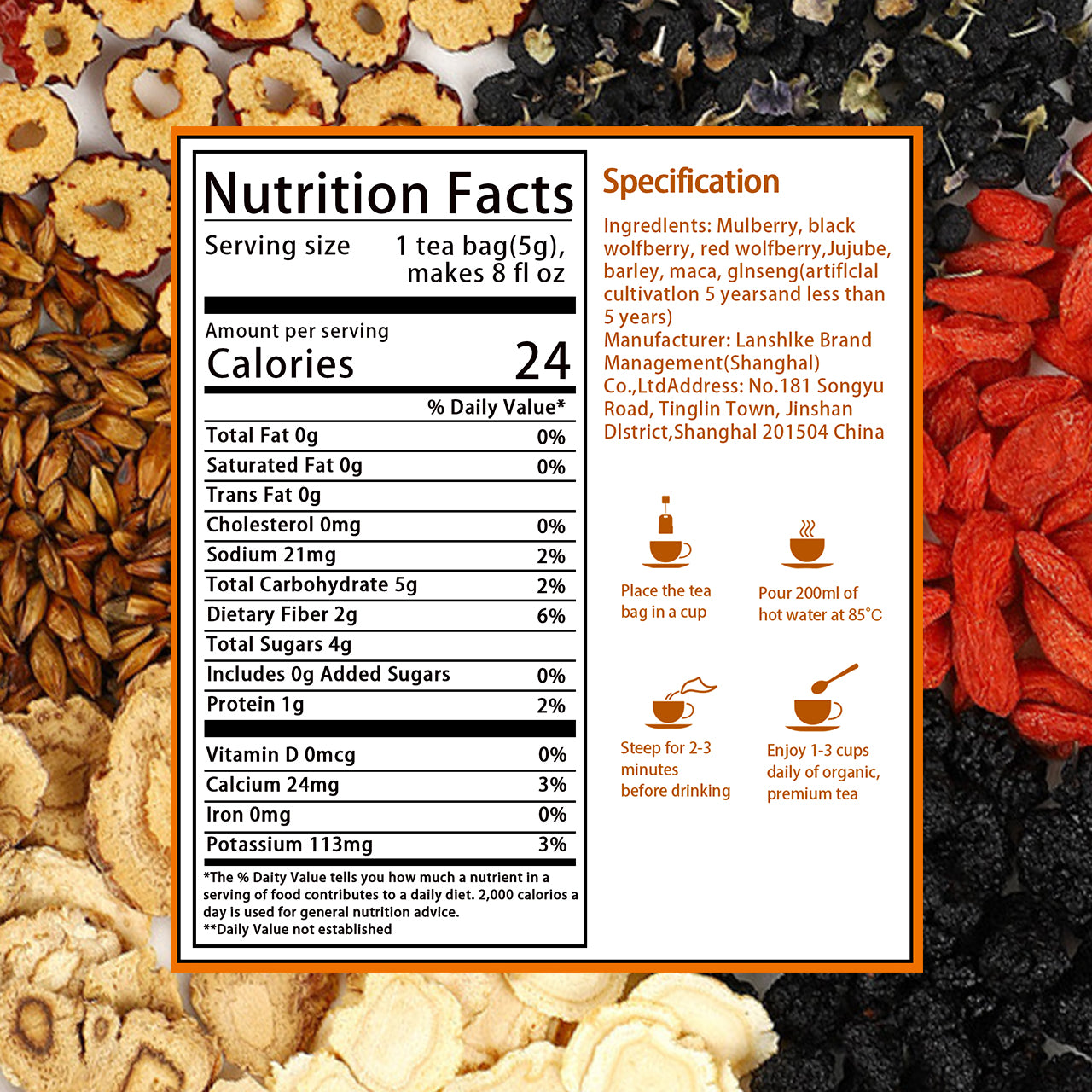 Organic Ginseng Treasure Herbal Tea Mulberry Wolfberry Maca & More 7 Ingredients